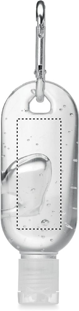 30 ml käsienpuhdistusgeeli PET pullossa, karabiinikoukulla. Karabiinikoukkua ei ole tarkoitettu kiipeilemiseen (ei ammattikäyttöön)