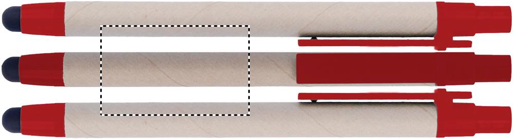 Kuulakärkikynä sinisellä musteella ja kosketusnäyttöpäällä. Kierrätyspaperista valmistettu runko, ABS- muovinen kärki ja klipsi.