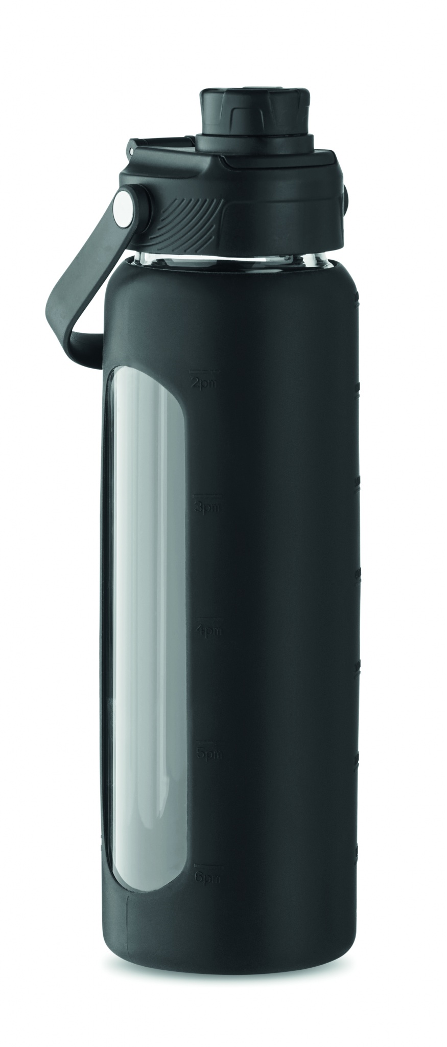 Korkea borosilikaattilasipullo, jossa on silikoninen läpinäkyvä hylsy ja PP-kansi kantokahvalla. Vuotamaton. Tilavuus: 750 ml.