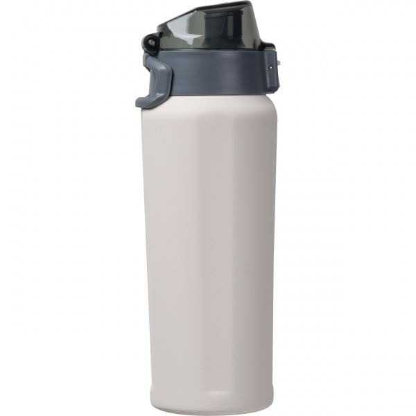 Tyylikäs pullo, joka on valmistettu kierrätetystä ruostumattomasta teräksestä, kaksiseinäinen tyhjiöeristyksellä, joka pitää juomat kuumana tai kylminä pitkiä aikoja. Sen tilavuus on 600 ml ja siinä on käytännöllinen napsautuskansi, joka helpottaa käsittelyä. Logosi kaiverretaan keskeisesti laseretsauksella – täydellinen tuotemerkkiin. Toimiva, laadukas ja ihanteellinen tien päällä.