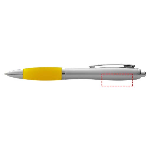 Kuulakärkikynä, jossa on click-toiminto. Pehmeä ote.