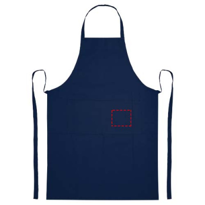 Ympäristöystävällisestä, 200 g/m² luomupuuvillasta valmistettu esiliina. Sisältää kaksi vierekkäistä taskua, joiden yhteiskoko on 45 x 20 cm ja metrin pituiset sidontanauhat. Kaulahihnan pituus: 55 cm.
