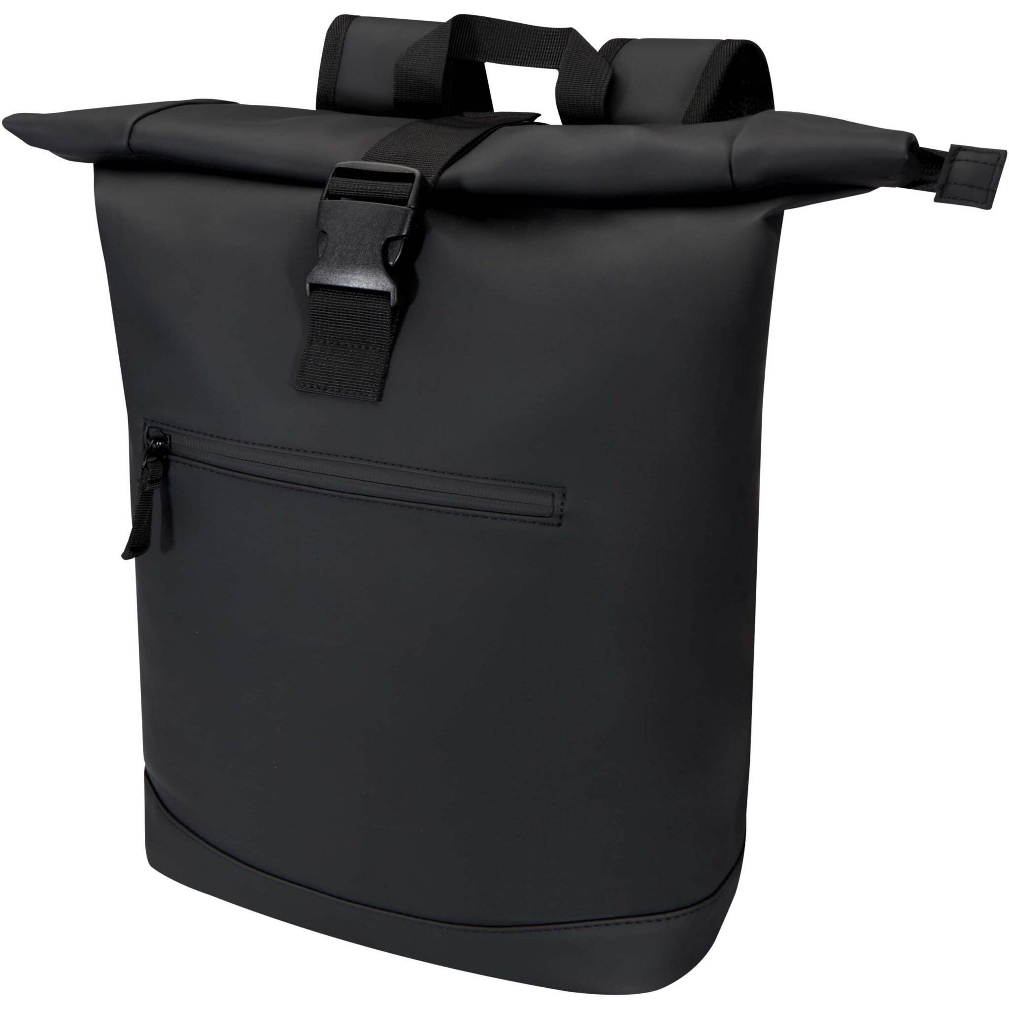Ensiluokkaisesta kierrätetystä PU-nahasta valmistettu rullattava reppu väriin sopivalla RPET-vuorella yhdistää modernin tyylin kestävään käyttöön. Sen vedenkestävä viimeistely pitää tärkeät tavarasi suojassa, ja rullattava suljin tarjoaa joustavaa säilytystilaa. Se onkin täydellinen työ- ja vapaa-ajan matkoille tai kuntosalille. Sisällä on pehmustettu lokero, johon mahtuu jopa 15,6 tuuman kannettava tietokone, sekä vetoketjullinen tasku, jossa voit pitää laitteesi ja päivittäiset tavarat järjestyksessä. Ulkopuolella oleva vetoketjullinen etutasku vedenpitävällä vetoketjulla tarjoaa turvallisen pääsyn tavaroihin, ja pehmustetut, säädettävät olkahihnat ja hengittävä selkäpaneeli takaavat mukavuuden koko päiväksi.