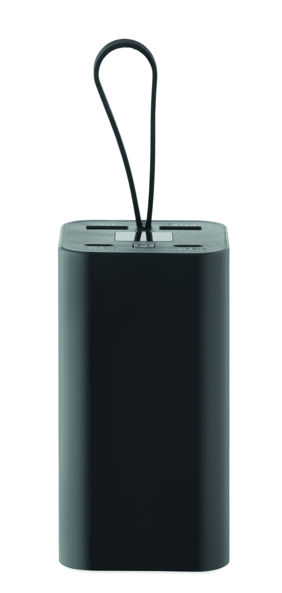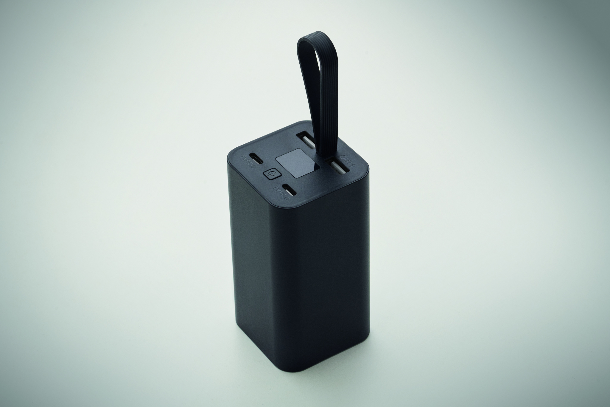 20 000 mAh talpos išorinė baterija, pagaminta iš perdirbto aliuminio, su skaitmeniniu įkrovos ekranu ir silikoniniu laikikliu. Turi du C tipo ir du USB-A išėjimus su PD 65W greituoju įkrovimu.