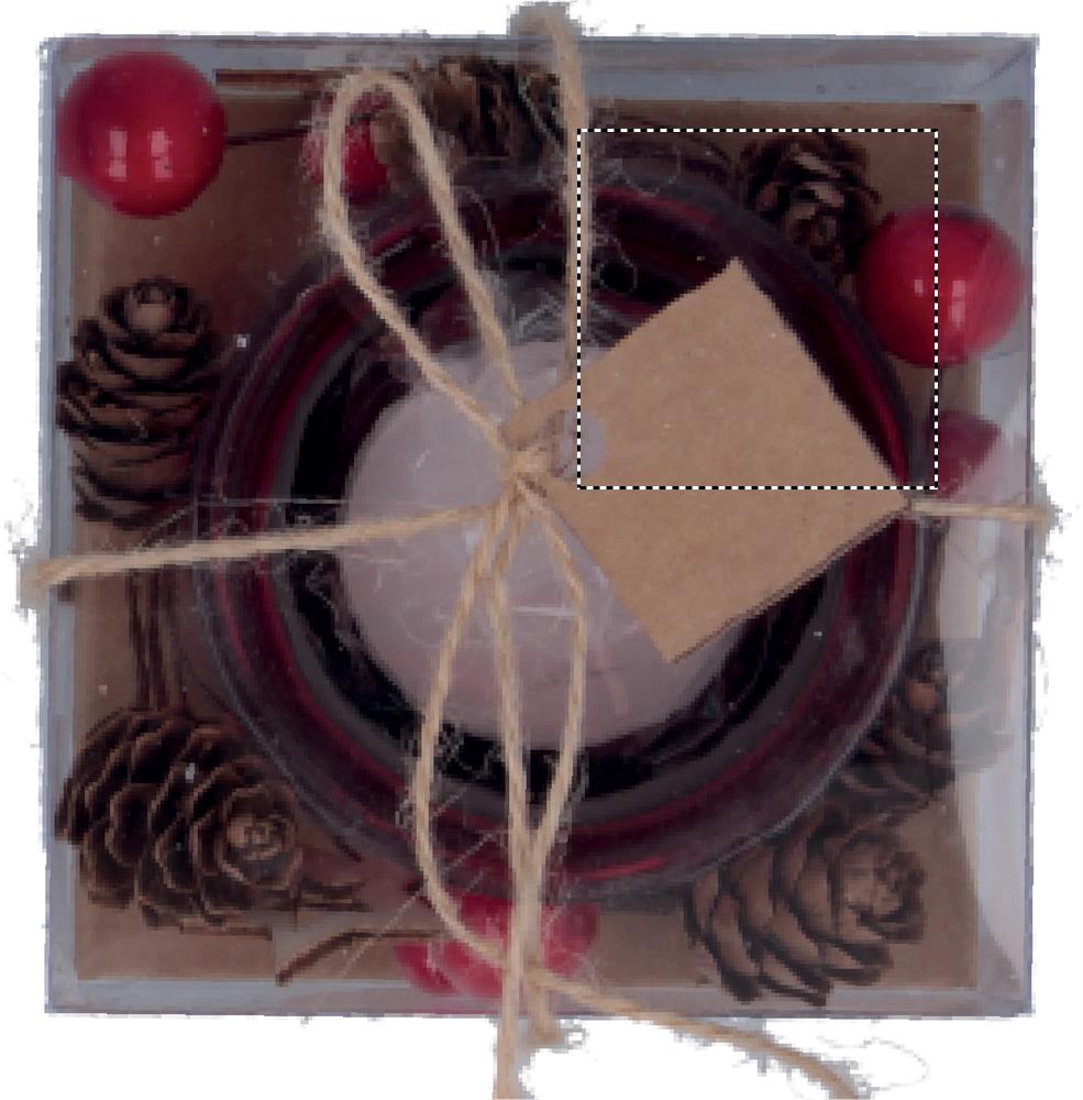 Stiklinis žvakių laikiklis, apsuptas ornamentais. Pateikiama kartoninėje ir PVC dėžutėje su kaspinu ir etikete.