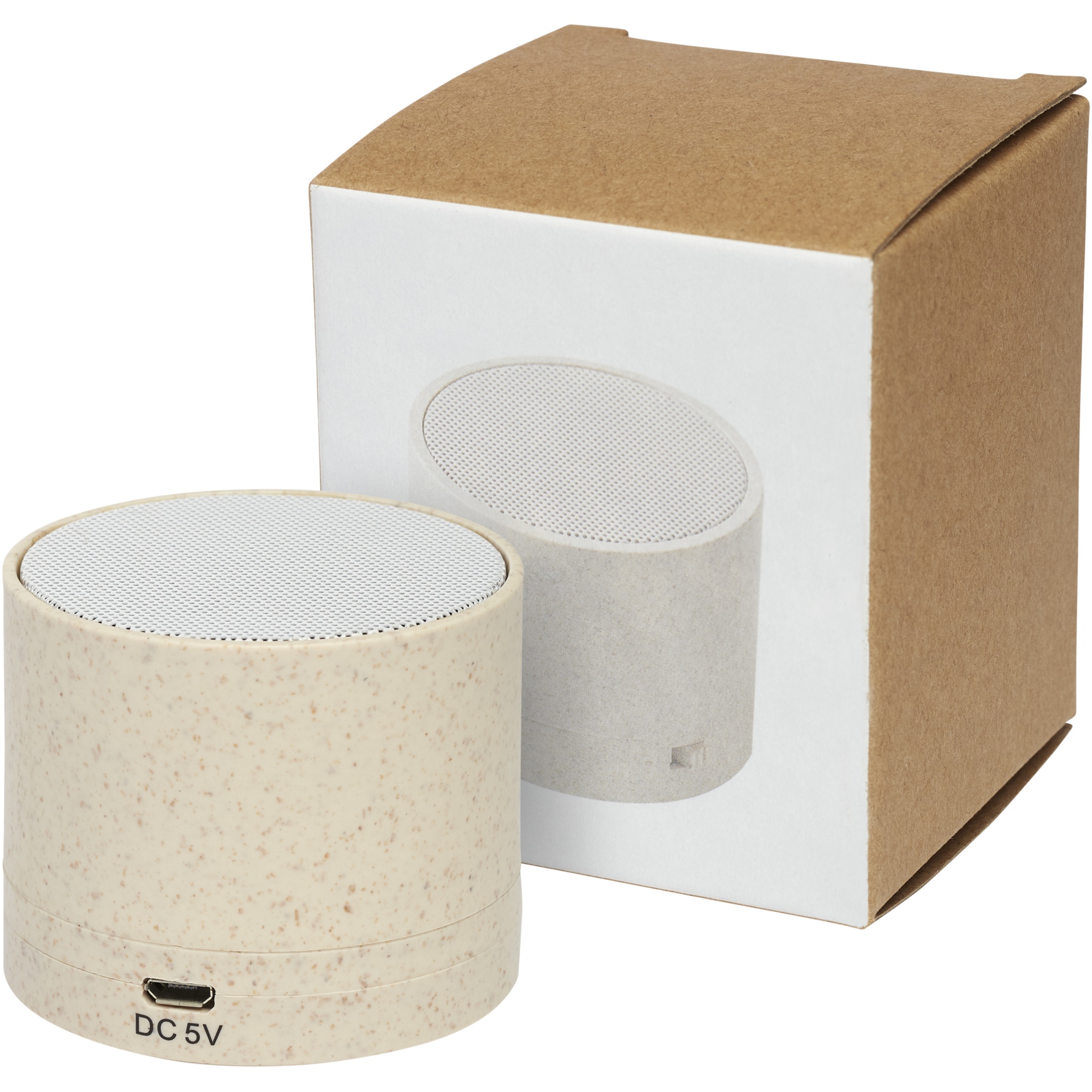 Bluetooth® garsiakalbių dėklas, pagamintas iš kviečių šiaudų ir plastikinės medžiagos, sumaišytos, sumažinant reikalingo plastiko kiekį. Garsiakalbis atkuria krištolo skaidrumo garsą daugiau nei 1,5 valandos atkūrimo metu maksimaliu garsumu ir 3 W išvestimi. Bluetooth® 5.0. Supakuota į dovanų dėžutę ir pristatoma su naudojimo instrukcija (abi pagamintos iš tvarios medžiagos). Pridedamas mikro-USB įkrovimo laidas.