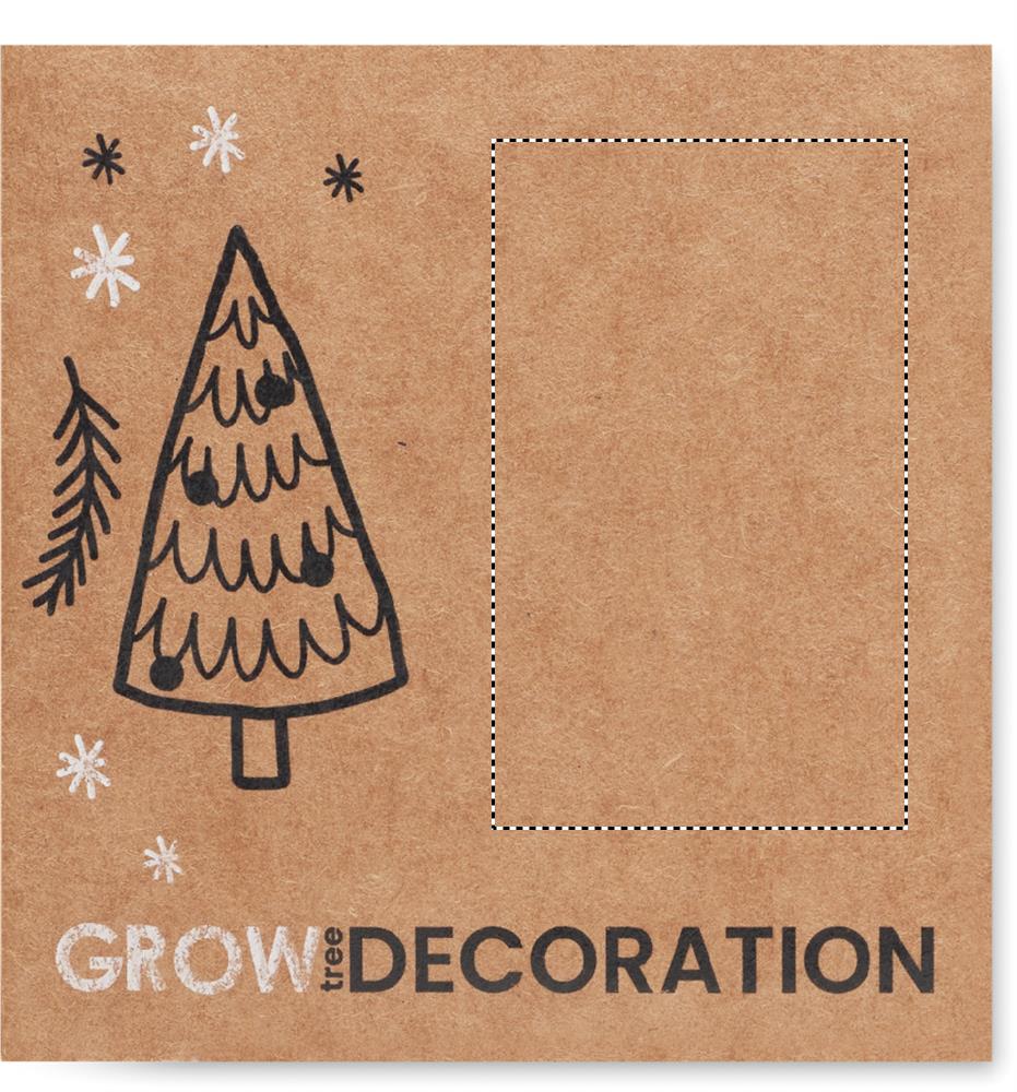 Medinė medžio formos dekoravimo kabykla su džiuto virvele, įskaitant eglės sėklas. Pateikiama kraft voke. Pagaminta ES.