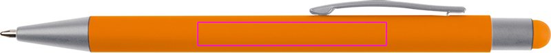 Metalinis rutulinis rašiklis su guminiu paviršiumi, jutikliniu rašikliu ir mėlynu rašikliu didelės talpos papildymu. Dešinėje klipo pusėje mes lazeriuojame jūsų logotipą.