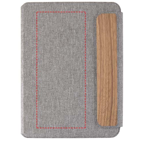 Портфель A5 Andean частично изготовлен из переработанного полиэстера, сертифицированного RCS, что является более экологичной альтернативой за счет снижения зависимости от первичных материалов. Изделие, сделанное с использованием технологии прецизионной сварки, имеет гладкий серый твердый внешний слой с закругленными углами, а также магнитную застежку, дополненную изысканной деталью из орехового дерева, что придает современный и изысканный вид. Внутри вы найдете блокнот в мягкой съемной обложке с 64 линованными листами кремового цвета, изготовленный из бумаги плотностью 80 г/м², полученной из ответственных источников. Поставляется в обложке из крафтовой бумаги.
