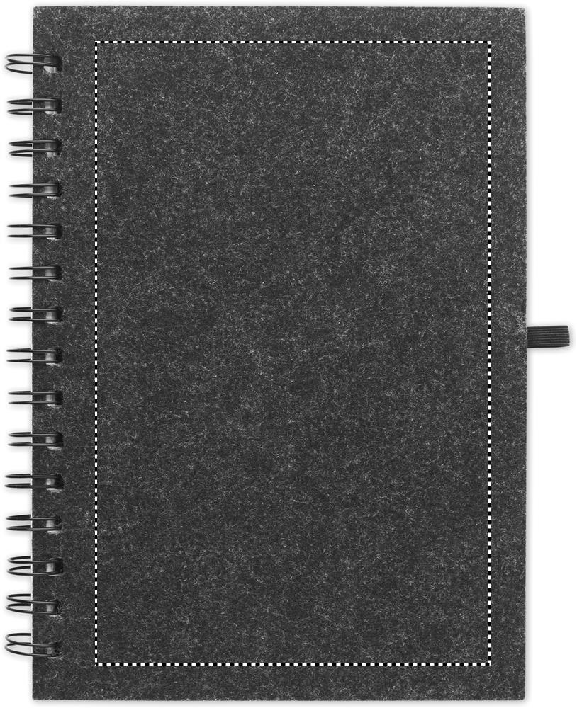 Блокнот A5 RPET в фетровой обложке. Двухсторонний переплет, 160 линованных страниц из вторичного сырья плотностью 70 гр/м² (80 листов) с эластичным держателем для ручки.
