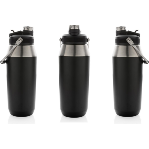 Бутылка вакуумная из нержавеющей стали с двойной крышкой 1 л, черный