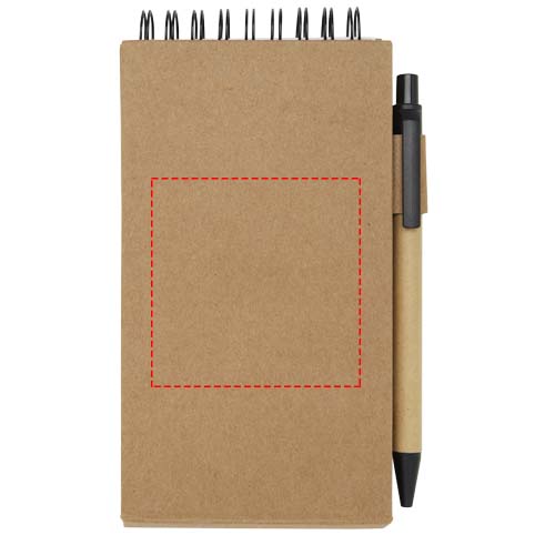 Липкий блокнот с шариковой ручкой. В блокноте 30 листов белой линованной бумаги плотностью 70 г/м2 (8 x 12 см). В комплект также входят 25 разноцветных (5 x 1,2 см) и 25 желтых (7,5 x 7,5 см) клейких листочков, оба типа на бумаге плотностью 70 г/м2. Корпус шариковой ручки изготовлен из переработанной бумаги. Цвет чернил: черный. Длина непрерывной линии: 1000 метров. Размер пера: 1,00 мм.