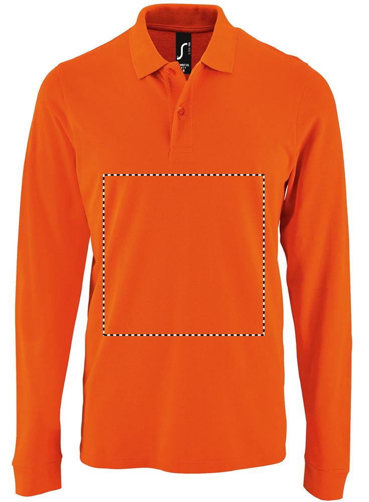 SOL'S PERFECT Мужская рубашка-поло с длинными рукавами, ребристым воротником и манжетами рукавов 1x1, планкой с 2 пуговицами в тон, проклеенным воротником с внутренней стороны, отрывной этикеткой на шее. Характеристики ткани: 180 г/м², 100% чесаный хлопок. OEKO-TEX®. Продается только с принтом