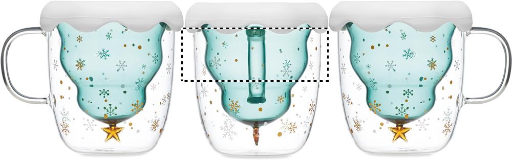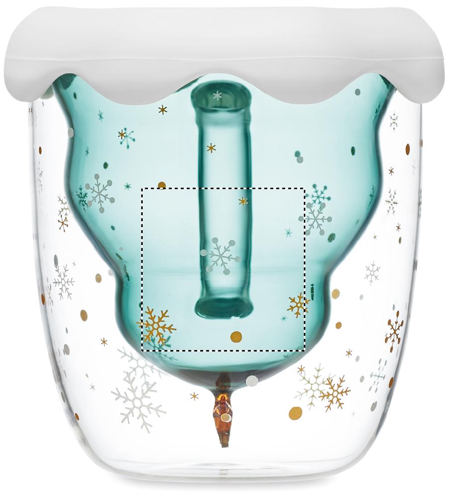 Кружка с двойными стенками из боросиликатного стекла с сезонным дизайном, силиконовой крышкой и подставкой. Объем: 250 мл.