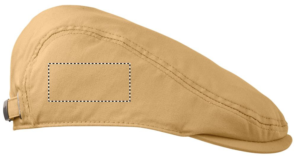 Newsboy flat cap in 235 gr/m² twill cotton with metal buckle closure.