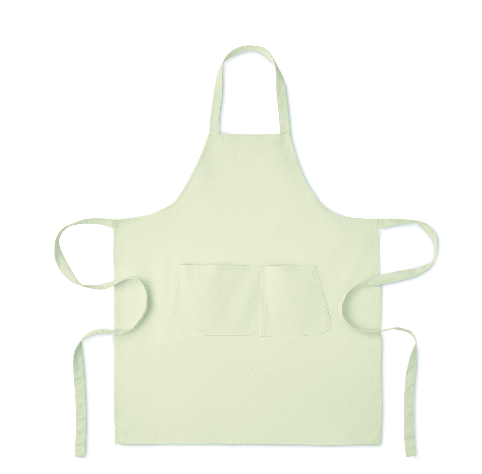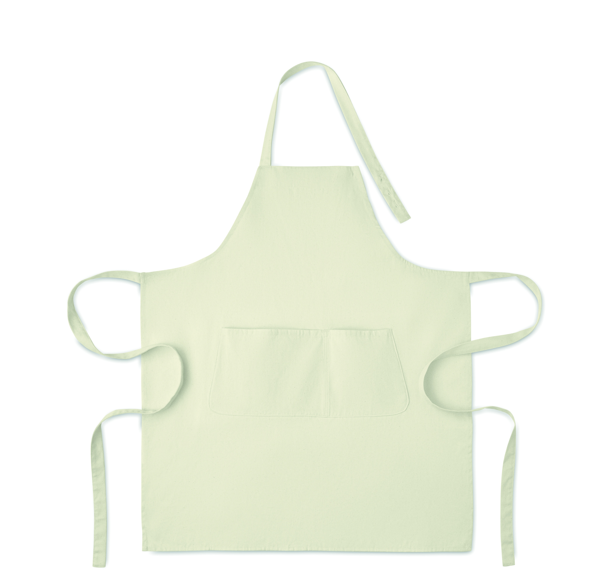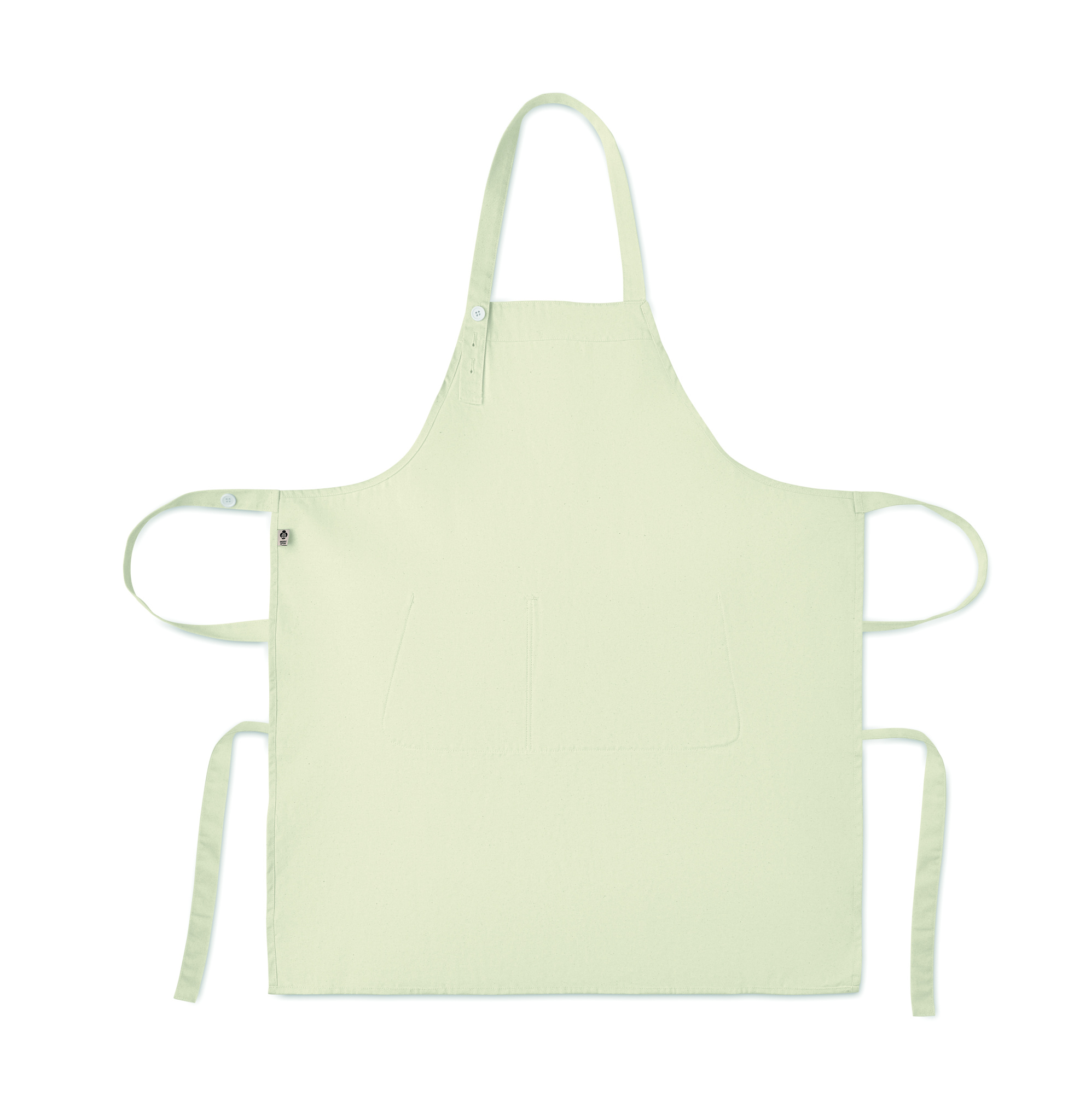 Adjustable bib apron with 1 large front pocket with 2 compartments in 240 gr/m² organic cotton. With adjustable button on the neck strap.