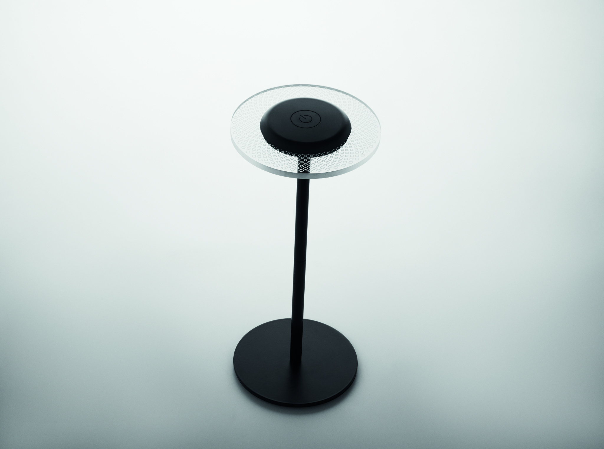 Rechargeable RGB table lamp in iron with 39 LED lights and stepless dimming. With warm or colour changing light options. Built-in 2000mAh battery lasts up to 6 hours.