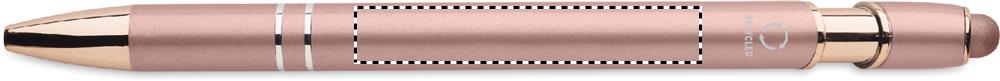 Шариковая ручка со стилусом из переработанного алюминия с деталями из розового золота. Синие чернила.