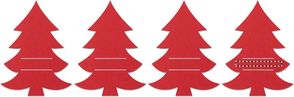 Набор из 4 фетровых (RPET) салфеток для столовых приборов в форме новогодней елки. Упакован в крафт-коробку