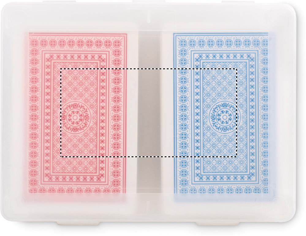 Set of 2 classic playing cards in recycled PP case. 2x54 cards (red and blue).