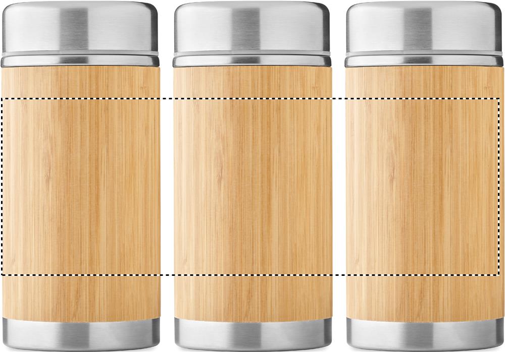 Термос для пищевых продуктов из нержавеющей стали с двойными стенками и завинчивающейся крышкой. Отделка из бамбука. Емкость: 600 мл.