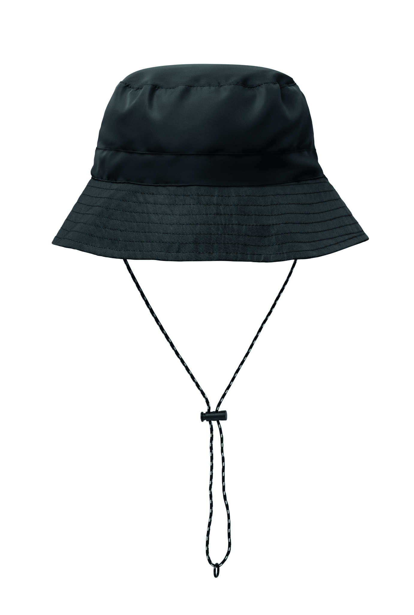 Water repellent fisherman hat made of polyester, includes self material pouch with ABS carabiner. 64 gr/m².