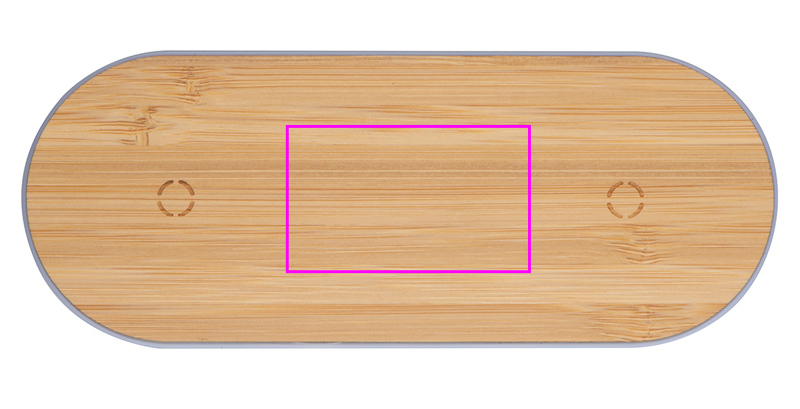 Тонкая пластиковая зарядная станция с бамбуковой поверхностью и двумя индукционными зарядными точками для смартфонов, включая кабель для зарядки. Ваш логотип будет выгравирован на станции.