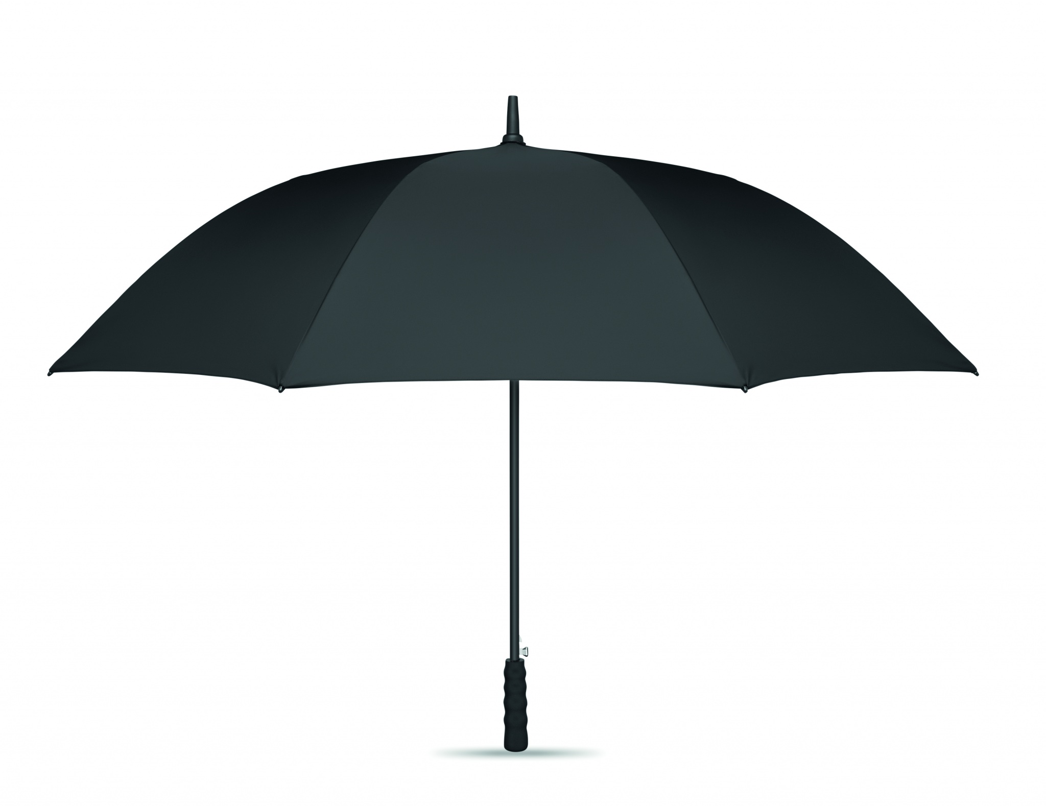 27 tums stormsäkert paraply med automatisk öppning i 190T RPET pongee. Skaft och ribbor av glasfiber. Handtag av vetestrå och återvunnet ABS. Tips och topp i plast.
