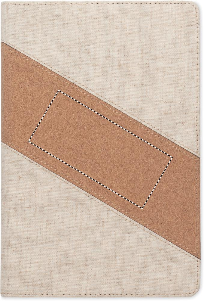 2-i-1-anteckningsbok. A5-anteckningsbok med integrerad trådlös laddare 15W. Med detaljer i bomull och kork på omslaget, 128 linjerade ark (64 ark). Bokmärke med band.