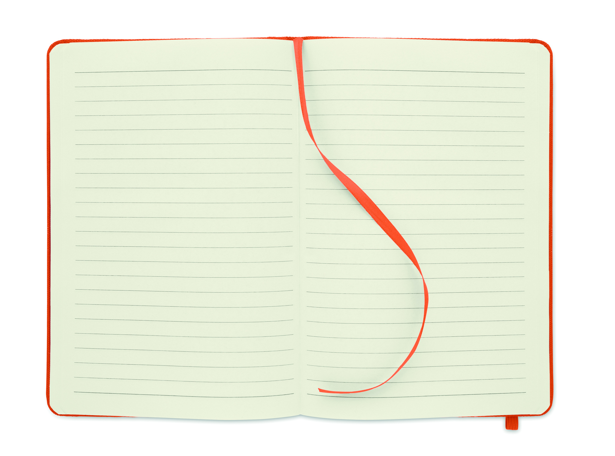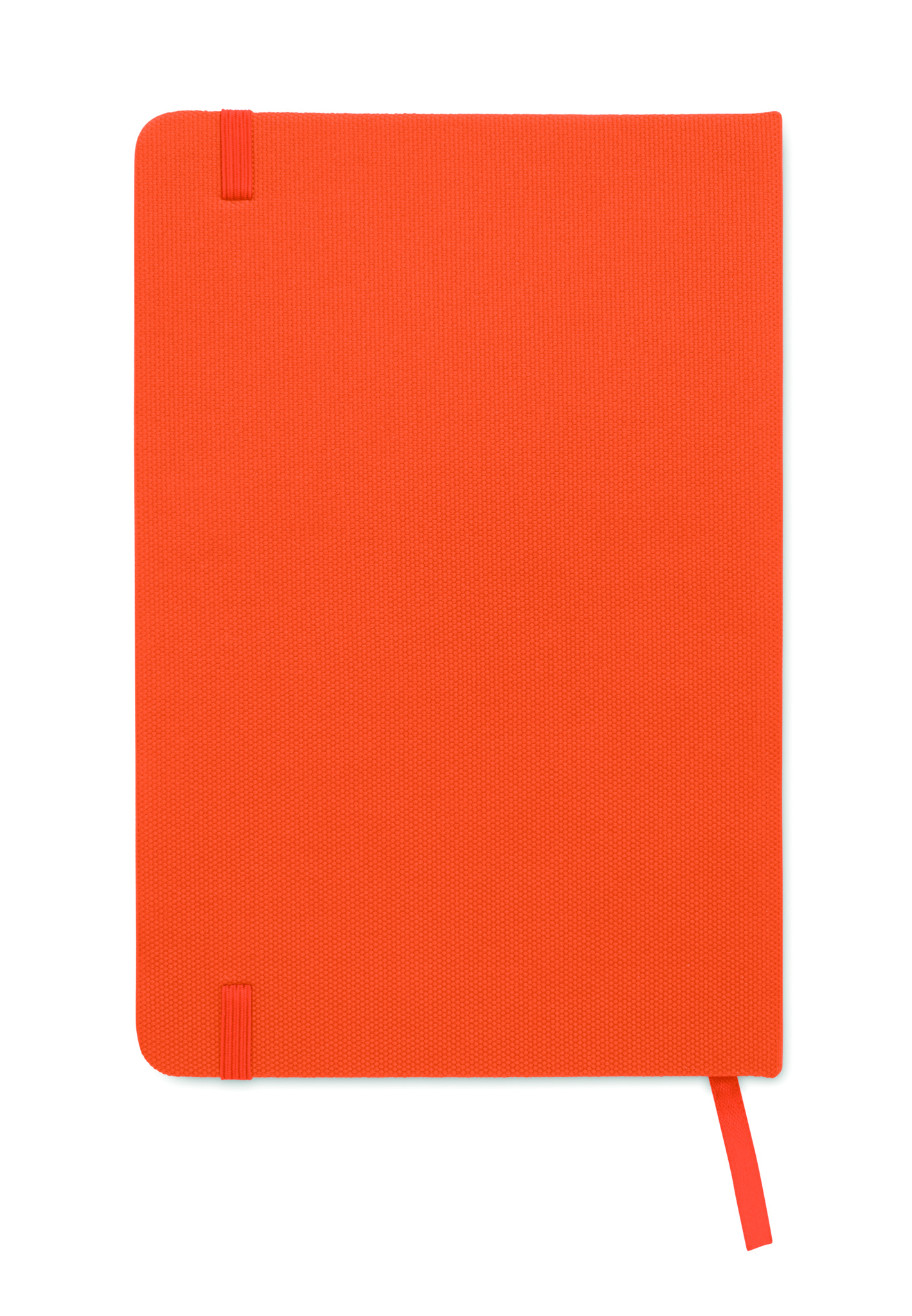 A5 anteckningsbok med 600D RPET hårt omslag och 80 linjerade sidor i återvunnet papper med ett elastiskt band och läsband.