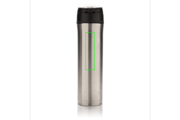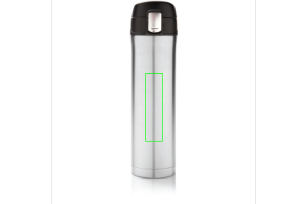 Dubbelväggig termos i rostfritt stål som håller din dryck varm upp till 5 timmar eller kyld upp till 15 timmar. Locket går att låsa och på så sätt undviker du spill och läckage. Locket är enkelt att rengöra för optimal hygien och kan till och med diskas i maskin. Termosens unika design gör det möjligt att dricka smidigt och säkert med en hand direkt från flaskan. Flaskans storlek passar nästan alla bilmugghållare. Kapacitet: 450 ml.