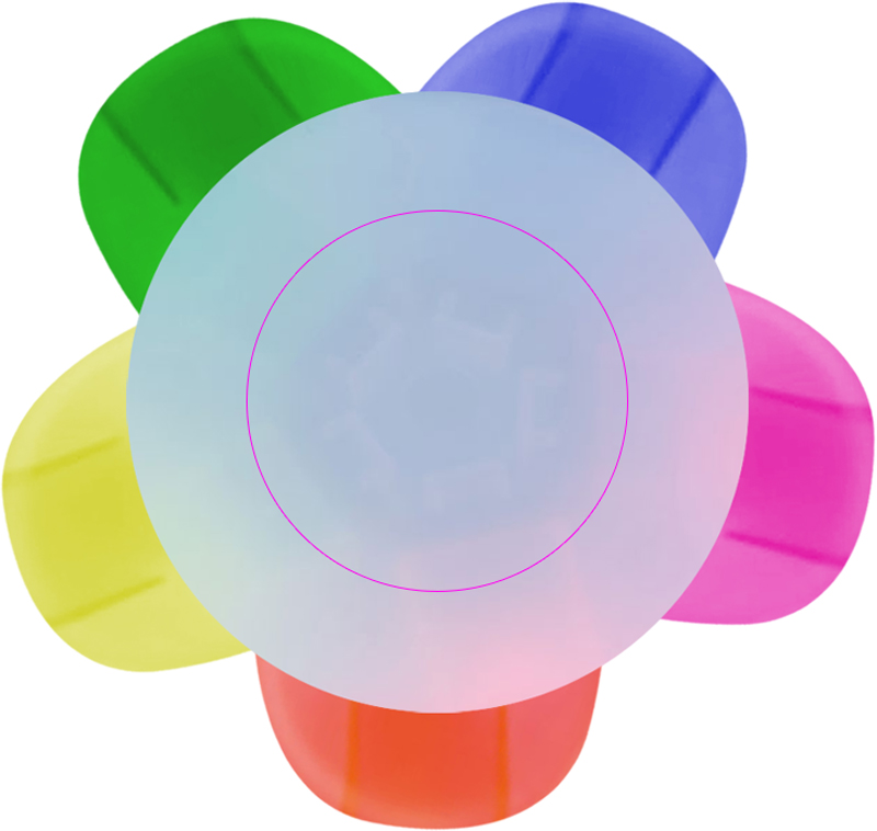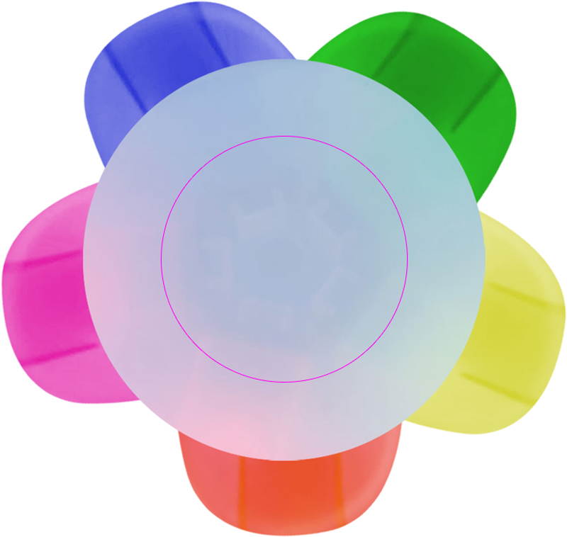 Highlighter med fem olika färger och stort annonsutrymme i mitten. Vi trycker din logotyp i mitten av highlightern.