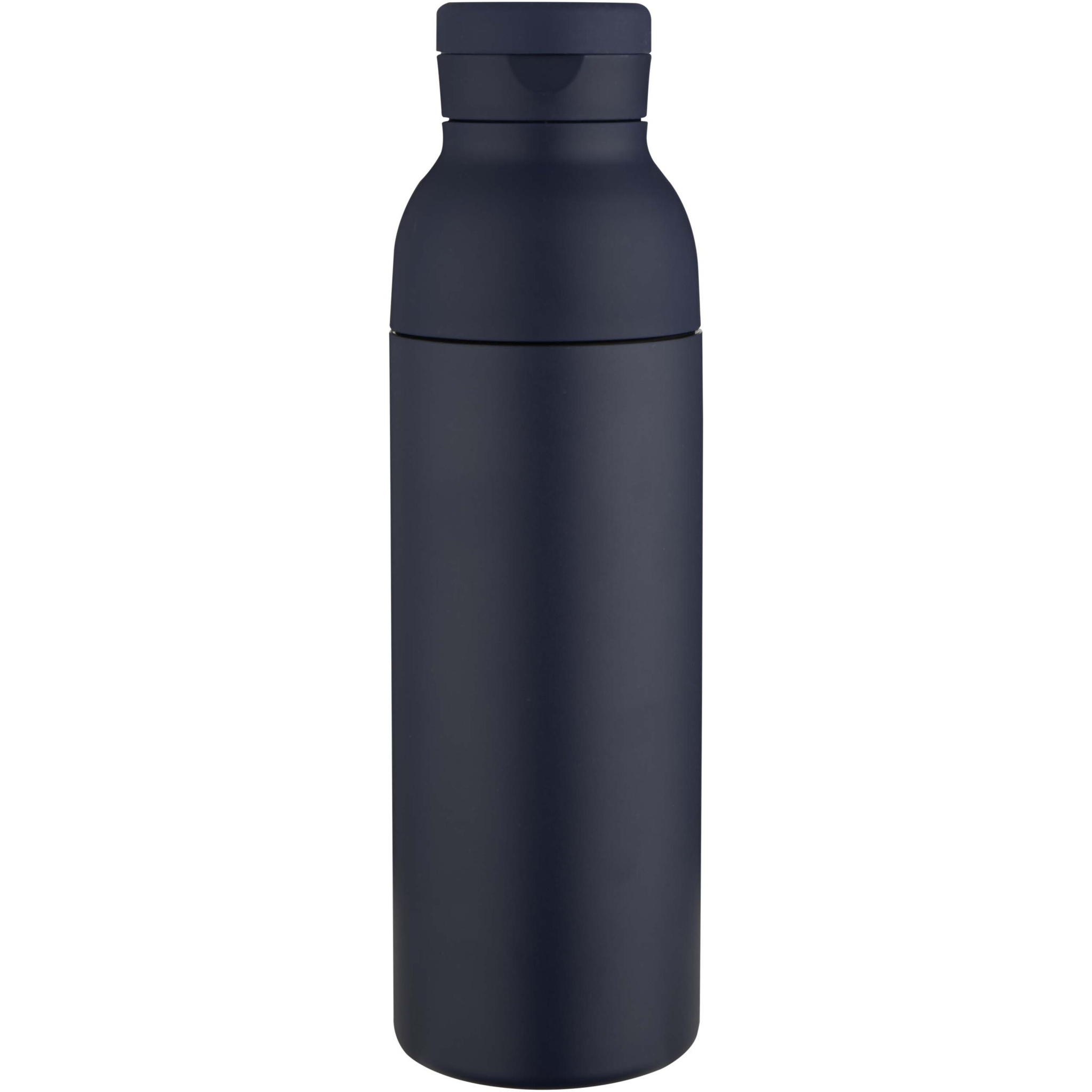 Detta presentset innehåller en 650 ml dubbelväggig, vakuumisolerad flaska tillverkad av RCS-certifierat rostfritt stål med en kopparplätering för bättre temperaturhållning. Flaskan är kompatibel med de tre utbytbara locken som ingår i setet. Lock 1 har ett diskret inbyggt silikonhandtag som gör det enkelt att bära. Lock 2 är ett sportlock med drickpip med uppfällbart lock och sugrör. Lock 3 har ett praktiskt trycklock i rostfritt stål som kan öppnas med en hand. Setet presenteras i en presentförpackning av återvunnen kartong, vilket gör det till en praktisk och omtänksam gåva.