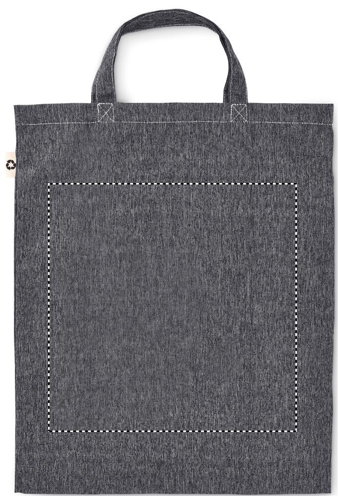 Hopvikbar kasse i 2-färgad återvunnen bomull och återvunnen polyester med långa handtag (20%/80%). Ca 140 gr/m². Den här artikeln kan krympa en aninmg vid tryckning.