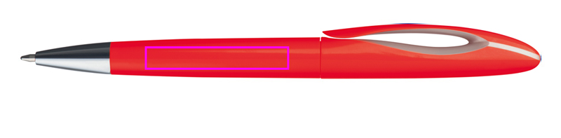 Kulspetspenna i plast med roterande mekanism och blåskrivande plastpåfyllning. Vi trycker din logotyp på skaftet.