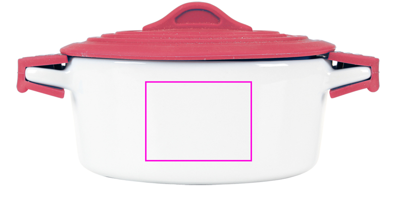 Porslinsgryta (lämplig för diskmaskin, ugn och mikrovågsugn), med värmebeständiga silikonhandtag (upp till 250 °C). Din logotyp kommer att tryckas på krukan i keramisk transfer.