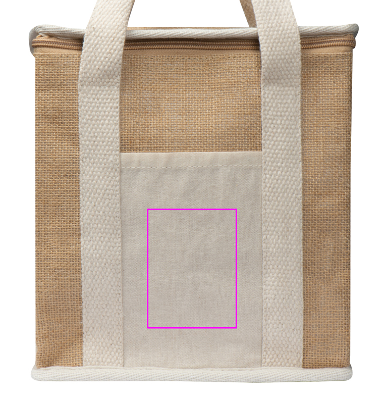 Presentset i miljövänlig förpackning, bestående av en matlåda (aluminium med låsbart bambulock), en kylväska av jute och en dricksflaska (rostfritt stål med en kapacitet på 500 ml). Din logotyp kommer att graveras på matlådan och flaskan.
