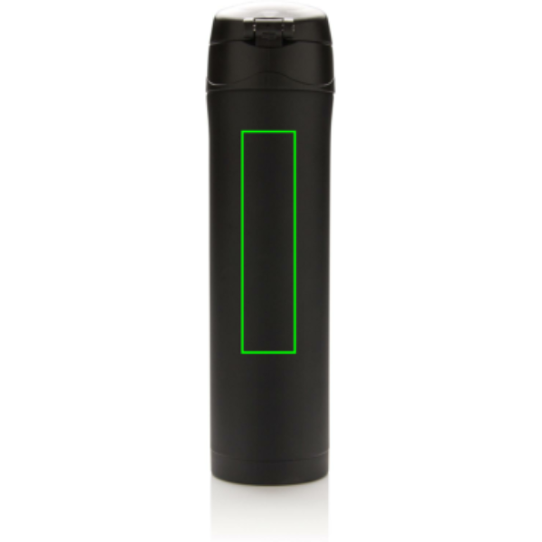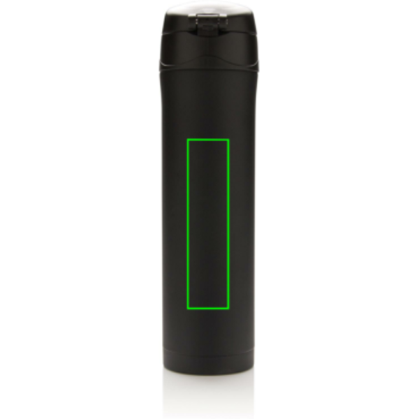 Dubbelväggig vakuumflaska i stainless steel håller din dryck varm upp till 5 timmar eller kyld upp till 15 timmar. Locket går att låsa och på så sätt undviker du spill och läckage. Locket är enkelt att rengöra för optimal hygien och kan diskas i maskin. Den unika designen gör det möjligt att dricka smidigt och säkert med en hand direkt från flaskan. Flaskans storlek passar nästan alla bilmugghållare. Tillverkad av RCS (Recycled Claim Standard) certifierade återvunna material. RCS certifiering säkerställer en helt certifierad leveranskedja av de återvunna materialen. Totalt återvunnet innehåll: 76% baserat på total produktvikt. BPA-fri. Volym: 450 ml. Levereras i FSC®-certifierad kraft förpackning.