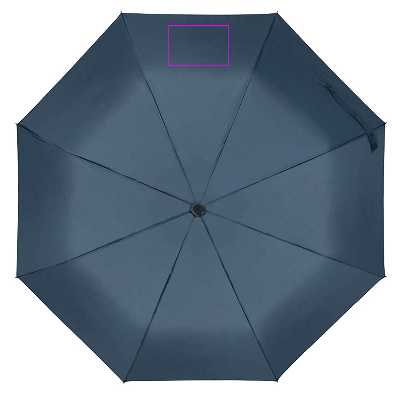 Automatiskt fickparaply med ram av glasfiber, lock av återvunna PET-flaskor, trähandtag och handledsrem. Din logotyp kommer att tryckas på ett segment.