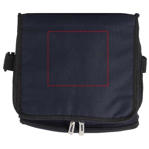 Vikbar kylväska med öppet huvudfack och blixtlåsförsedd ficka framtill. Justerbar axelrem. Kylväskan kan vikas ihop plant tack vare kardborrstängningen på fickan framtill. Tillbehör medföljer ej.