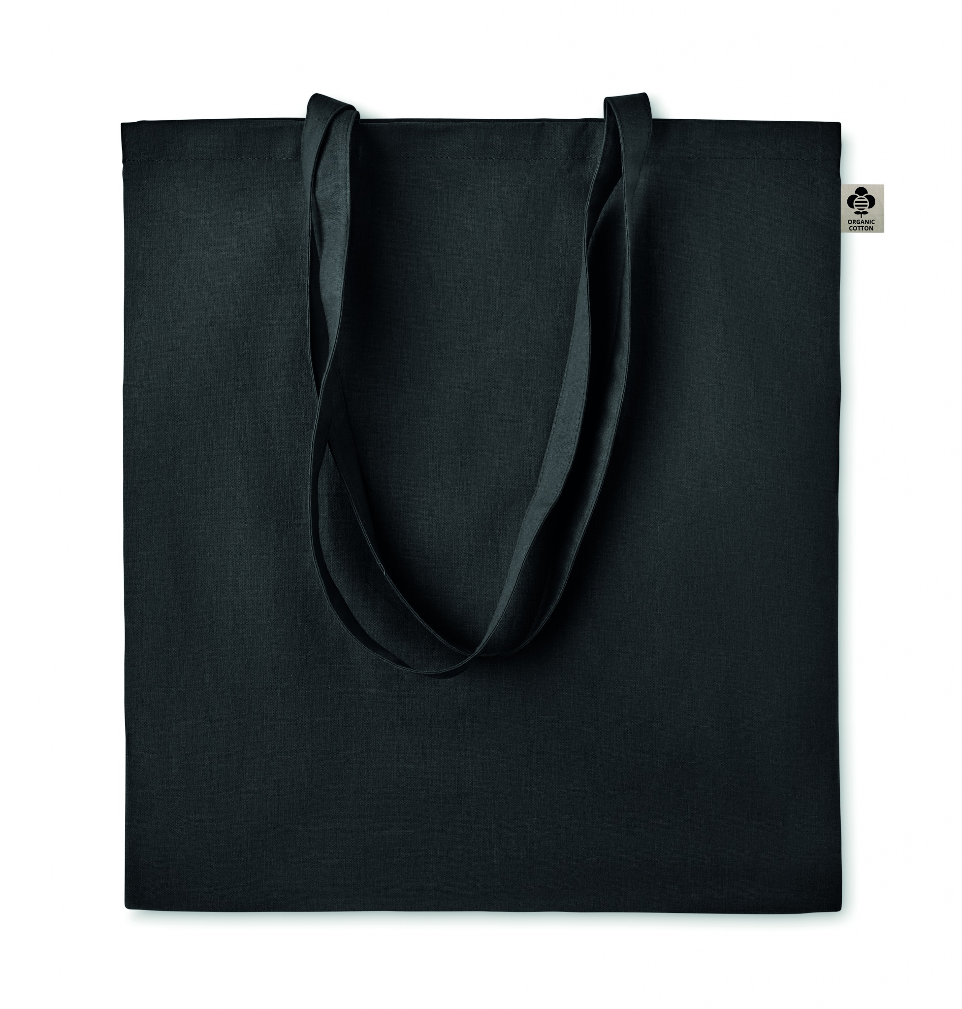 Kasse i ekologisk bomull med långa handtag. 140 gr/m².