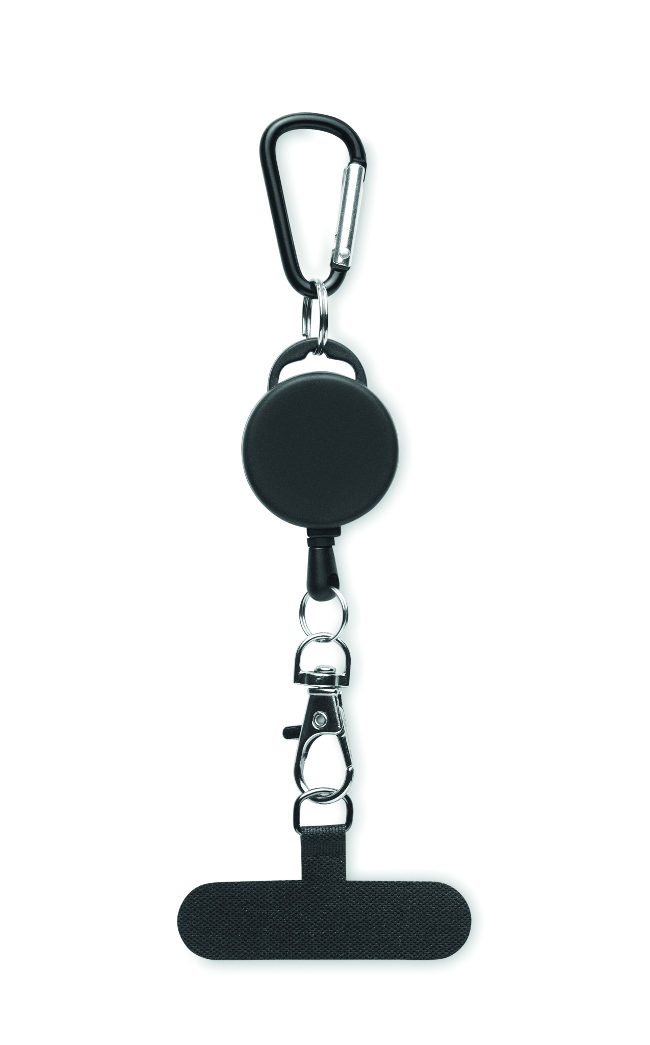 Jojo för telefon- och/eller korthållare i ABS med karbinhake i aluminium. Karbinhaken är inte avsedd för klättring (icke-professionell användning).